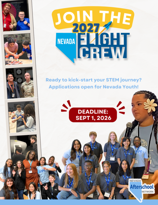 The NV Flight Crew is a highly visible youth ambassador program led by the Nevada Afterschool Network that elevates young voices in STEM from across Nevada, showing their peers that STEM is for everyone and happens everywhere.